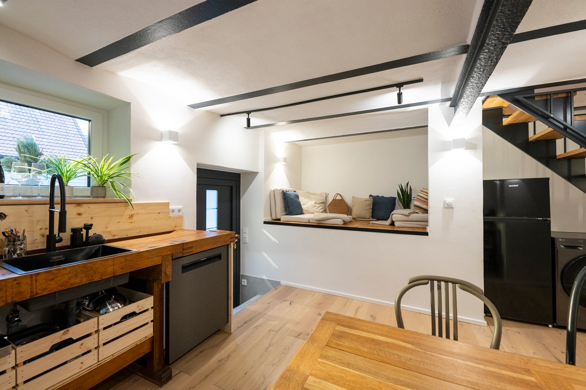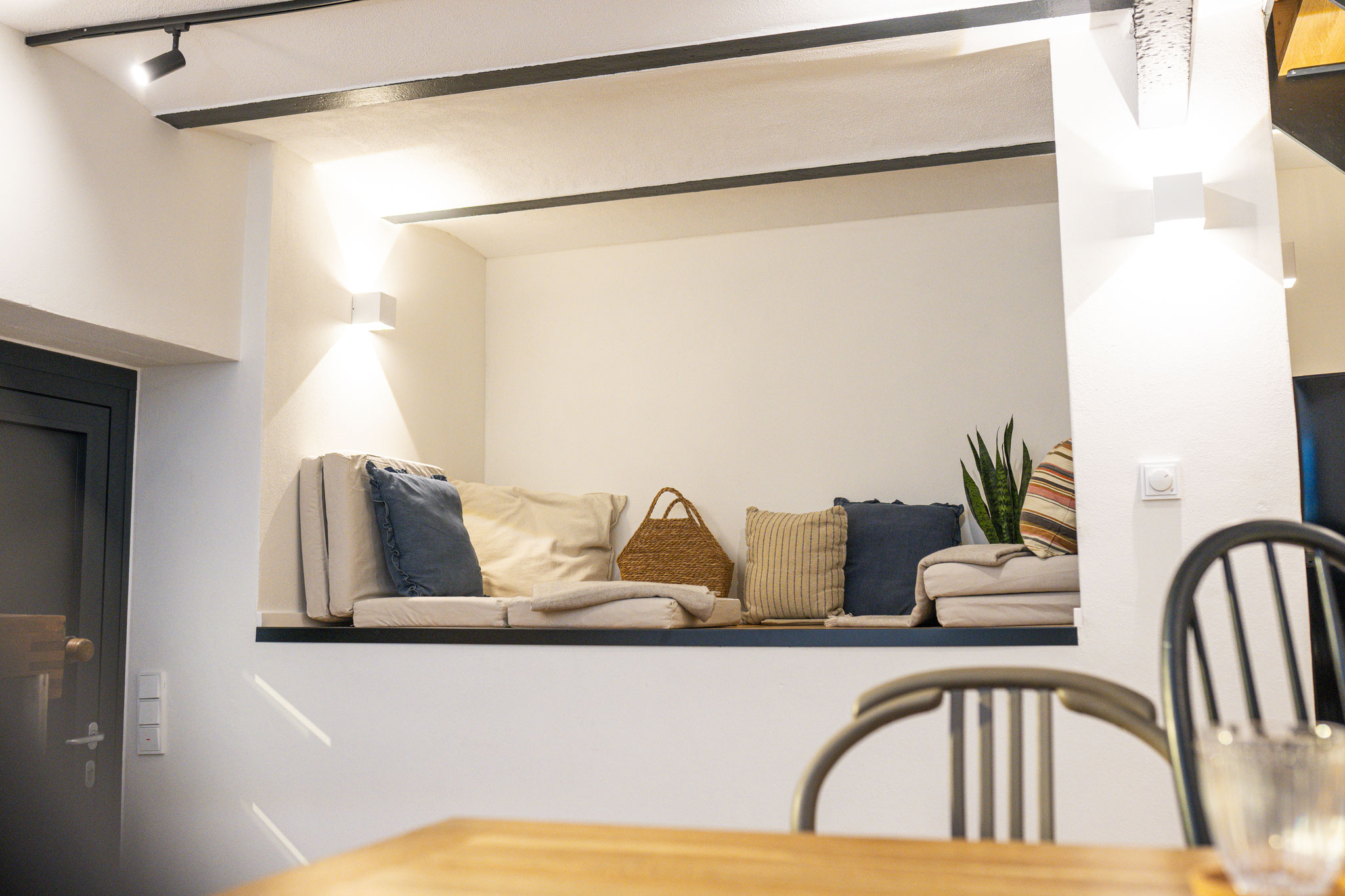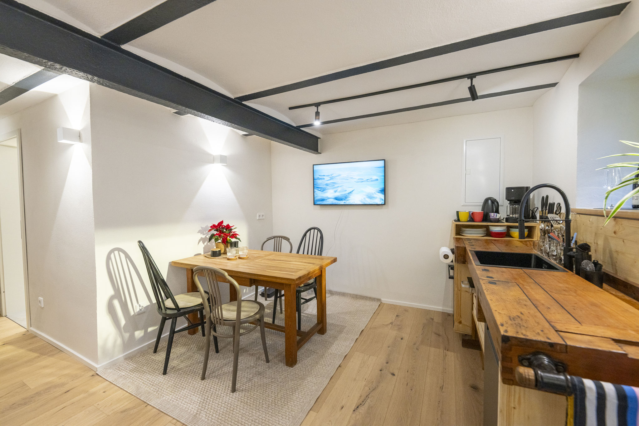 Das Ergebnis ist eine Ferienwohnung, die nicht nur gut aussieht, sondern sich auch gut anfühlt – warm, ruhig, natürlich.