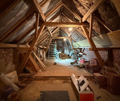 Im ehemaligen "Kleinen Stall" entsteht zwischen Ende 2024 und Ende 2025 eine liebevoll sanierte, kompakte Wohneinheit mit rund 38 m², die bereits heute als Ferienwohnung genutzt wird. Der historische Charakter des Gebäudes bleibt erhalten, während hochwertige Materialien, ökologisches Bauen und moderne Ausstattung ein gemütliches, behagliches Ambiente schaffen.