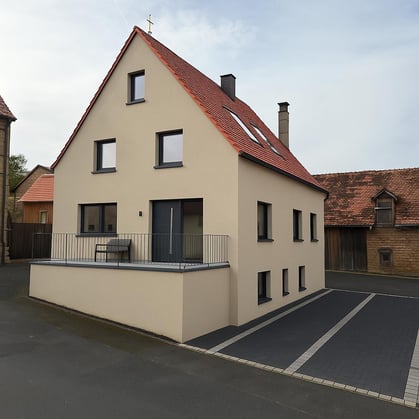 Diese liebevoll sanierte 3-Zimmer-Wohnung im Hochparterre (wenige Stufen, dafür erhöhte Privatsphäre) bietet ein besonderes Wohngefühl: historische Bausubstanz aus dem Jahr 1908 trifft auf moderne Ausstattung, hochwertige Materialien und eine ruhige Lage mitten im Dorfkern von Repperndorf.